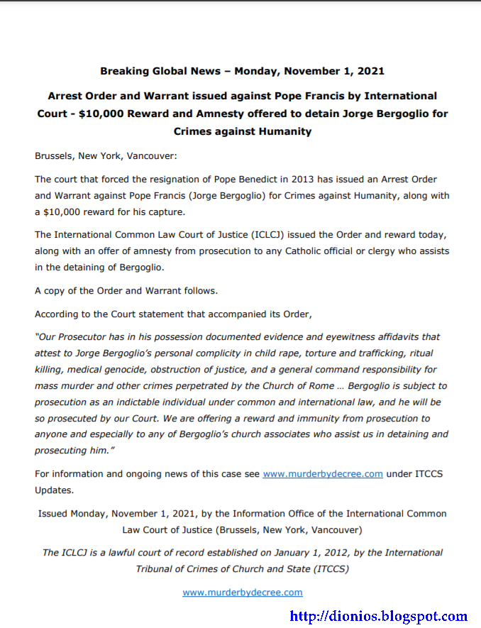 World Bank, Federal Reserve, ITC, Consolidated Credit Bank LTD, UN, EU, ECB, IMF, Ελληνική Δημοκρατία, Άρειος Πάγος, USA & Ρωσία).